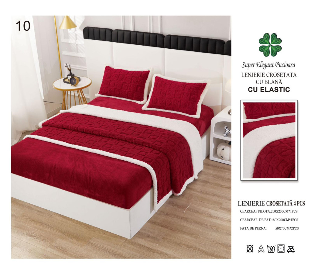 NOU Lenjerie croșetată cu blană cu elastic 4 piese - Cod Cros10