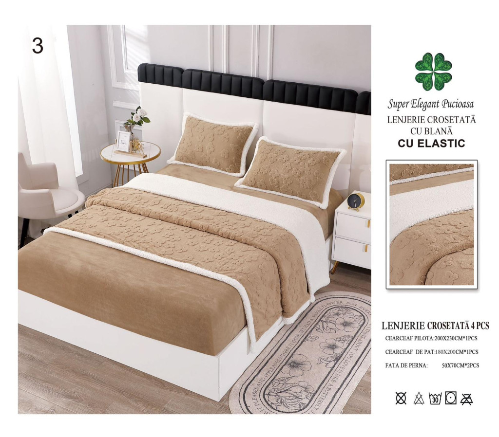 NOU Lenjerie croșetată cu blană cu elastic 4 piese - Cod Cros3