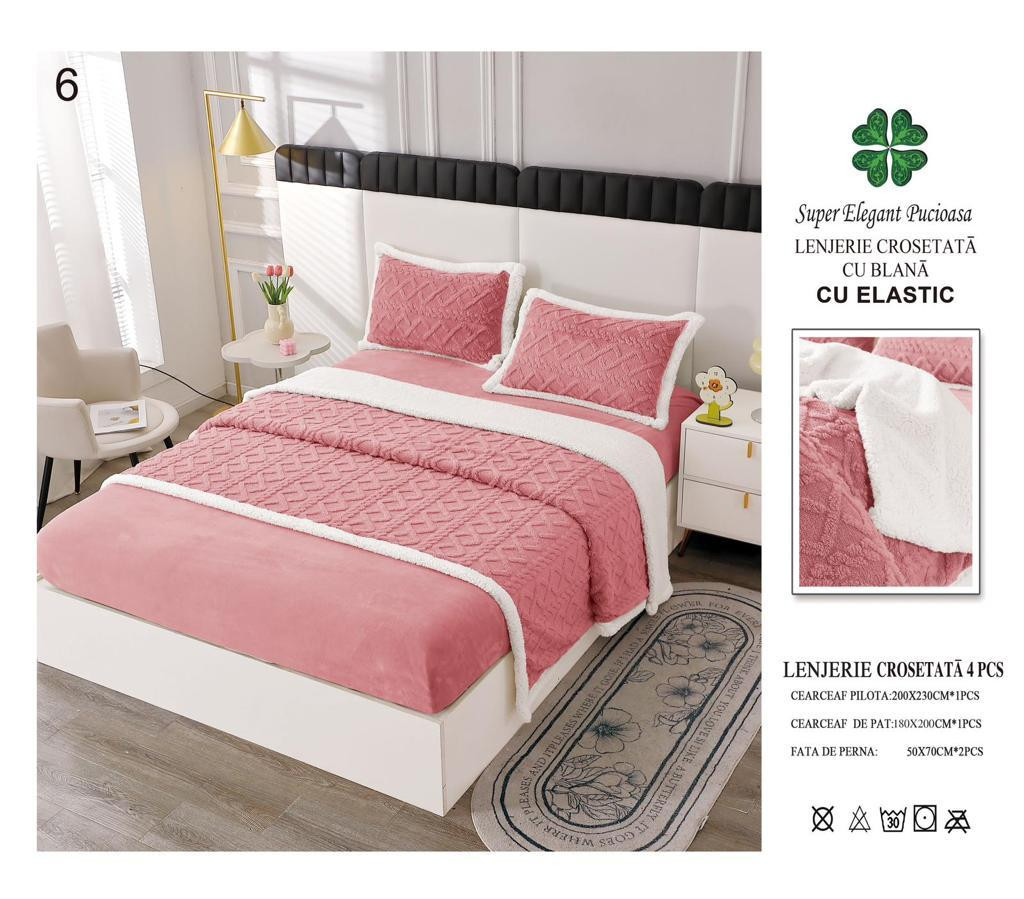 Lenjerie croșetată cu blană cu elastic 4 piese