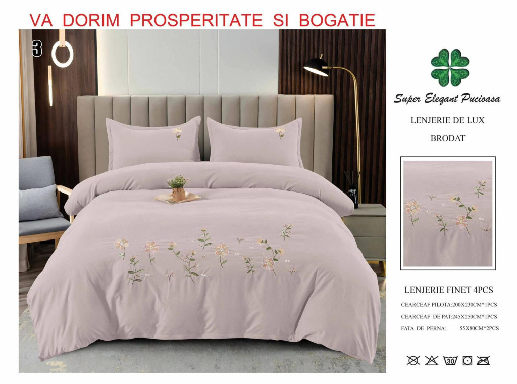 NOU Lenjerie de lux brodat 4 piese - Cod Brodat3