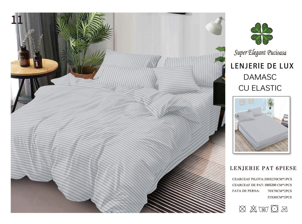 Lenjerie de lux damasc cu elastic 6 piese - Cod DAU-11