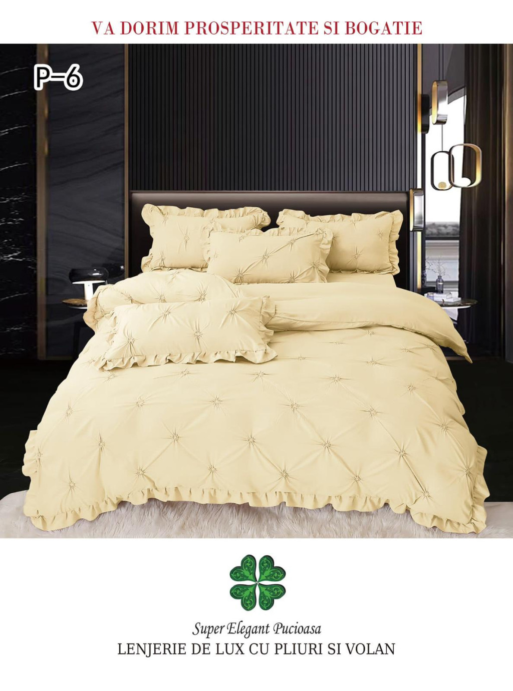 Lenjerie de lux pliuri si volan 4 piese - Cod P-6