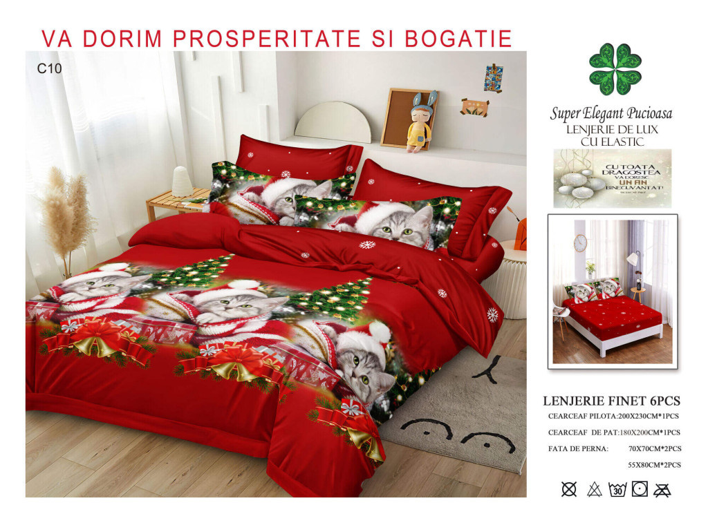 Lenjerie de pat craciun finet cu elastic 6 piese - Cod C10
