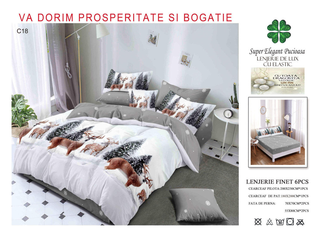 Lenjerie de pat craciun finet cu elastic 6 piese - Cod C18