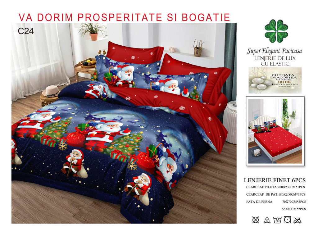 NOU Lenjerie de pat craciun finet cu elastic 6 piese - Cod C24