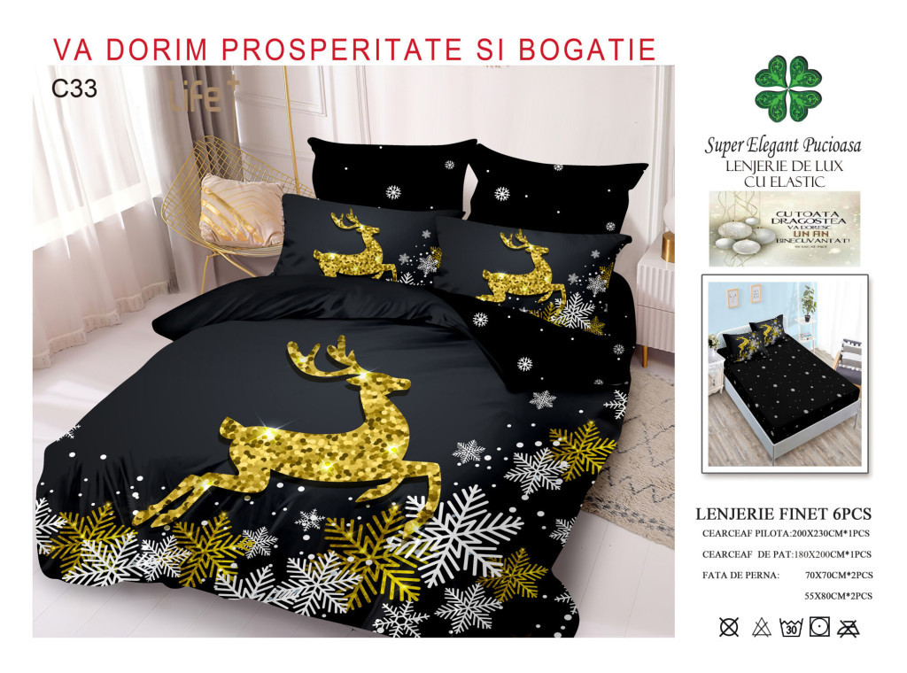 Lenjerie de pat craciun finet cu elastic 6 piese - Cod C33