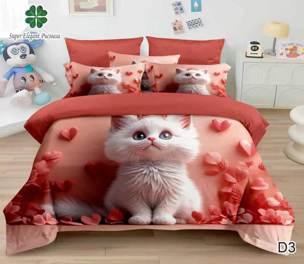 NOU Lenjerie de pat finet cu elastic 6 piese 5D - Cod 5D3