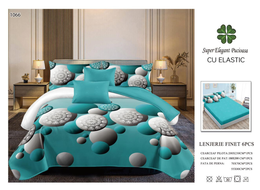 NOU Lenjerie de pat finet cu elastic 6 piese - Cod A1066