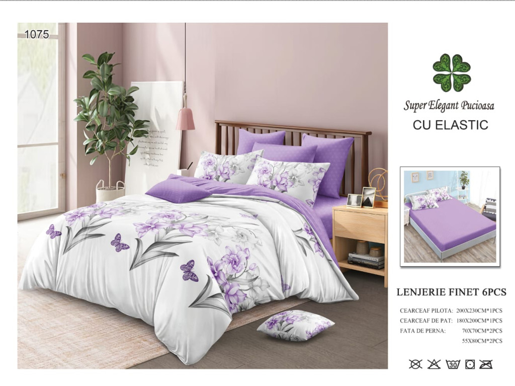 Lenjerie de pat finet cu elastic 6 piese - Cod A1075