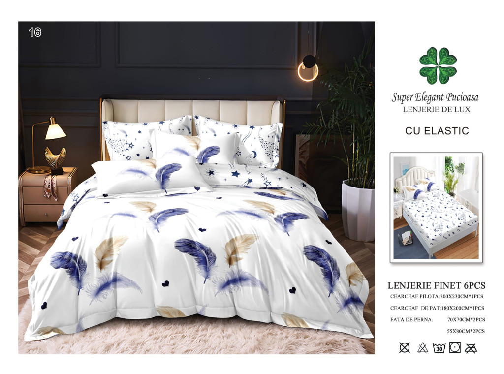 NOU Lenjerie de pat finet cu elastic 6 piese - Cod A16