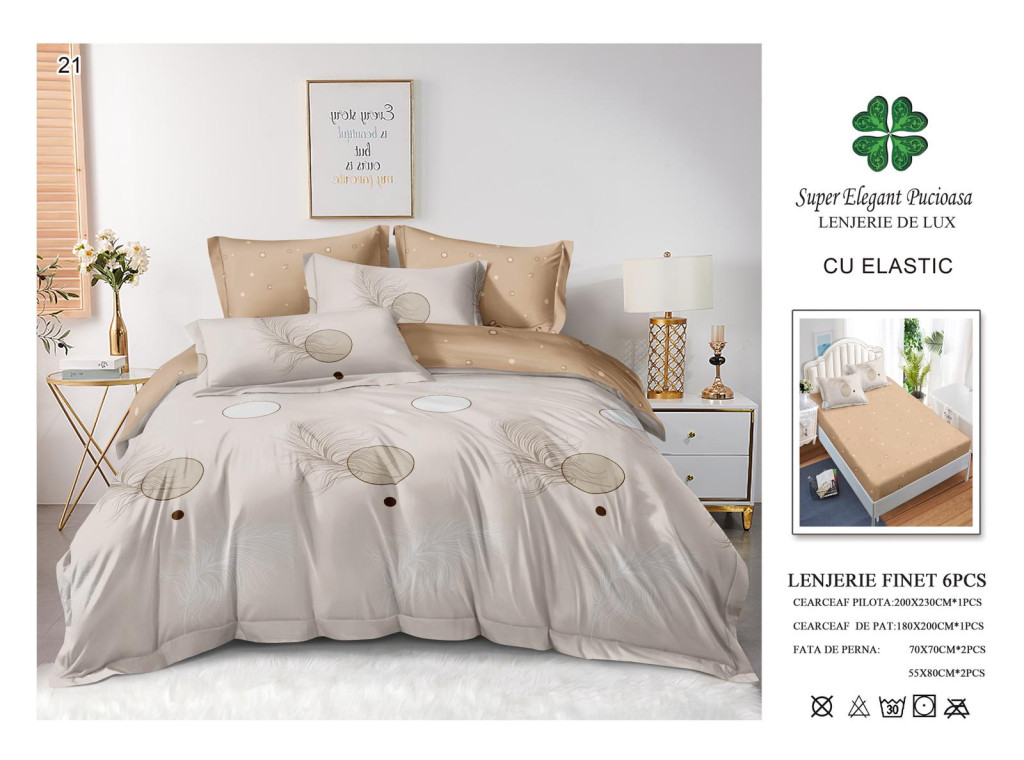 Lenjerie de pat finet cu elastic 6 piese - Cod A21