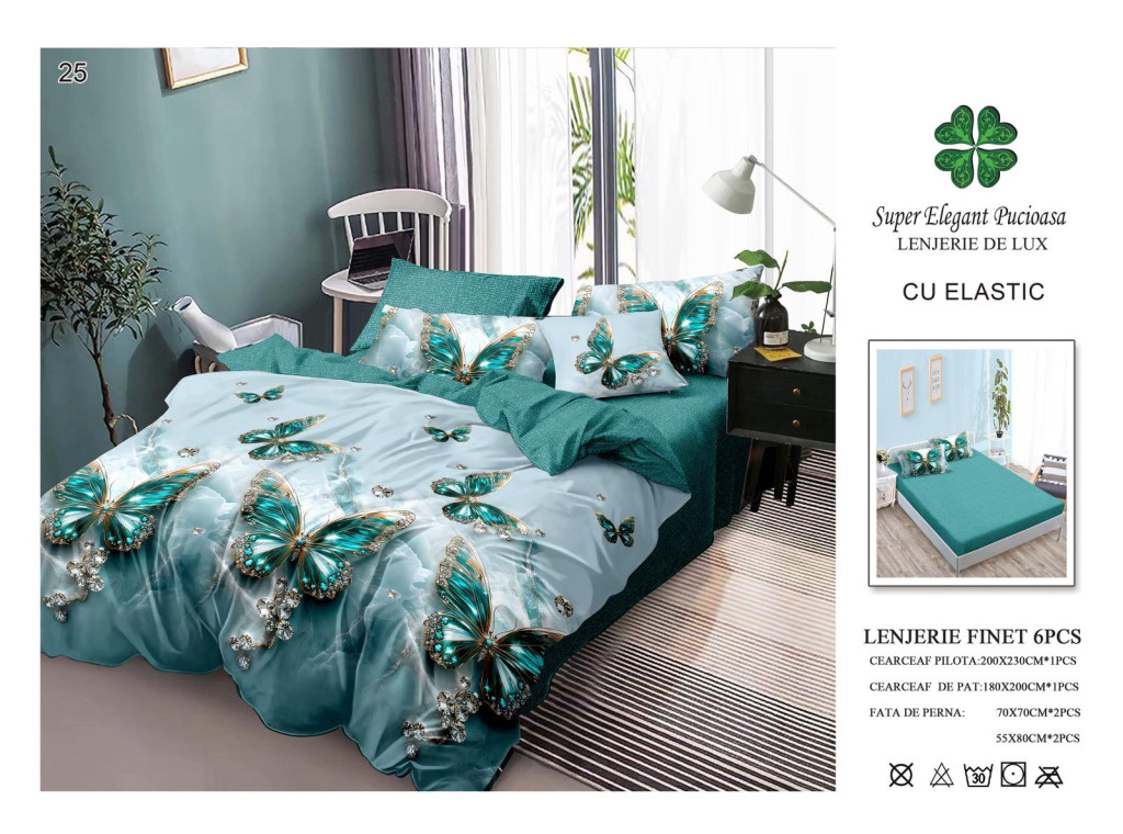 NOU Lenjerie de pat finet cu elastic 6 piese - Cod A25
