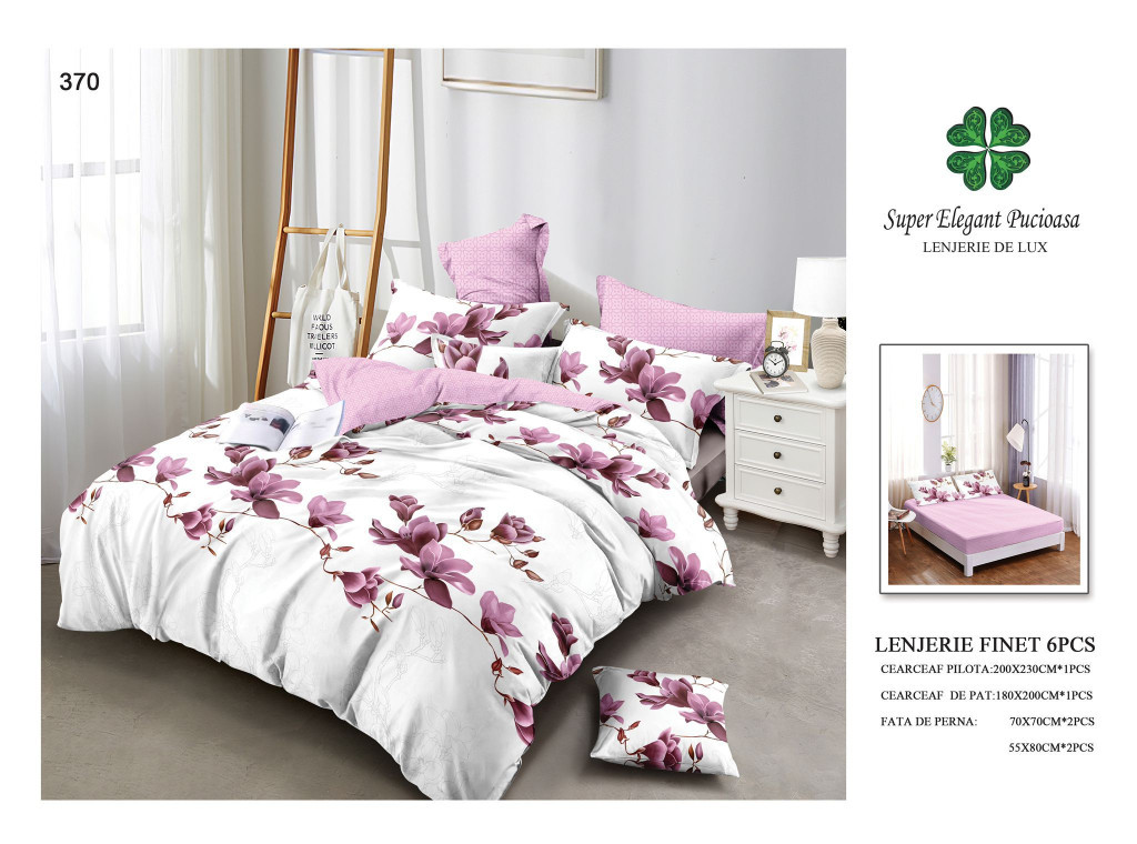 NOU Lenjerie de pat finet cu elastic 6 piese - Cod A370