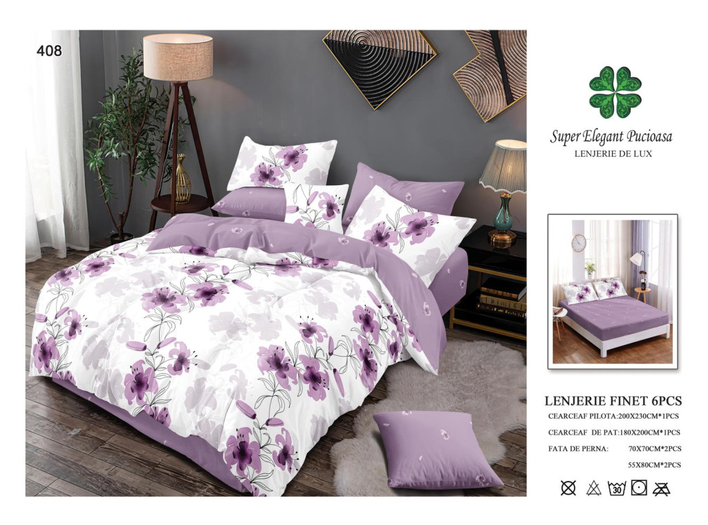 NOU Lenjerie de pat finet cu elastic 6 piese - Cod A408