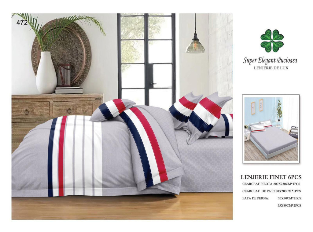 Lenjerie de pat finet cu elastic 6 piese - Cod A472