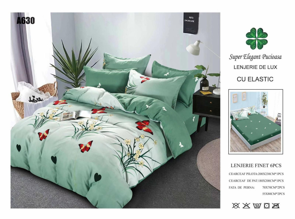 NOU Lenjerie de pat finet cu elastic 6 piese - Cod A630