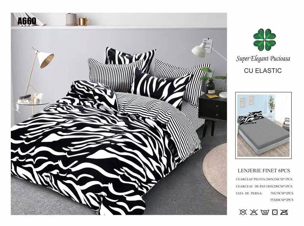 Lenjerie de pat finet cu elastic 6 piese - Cod A660