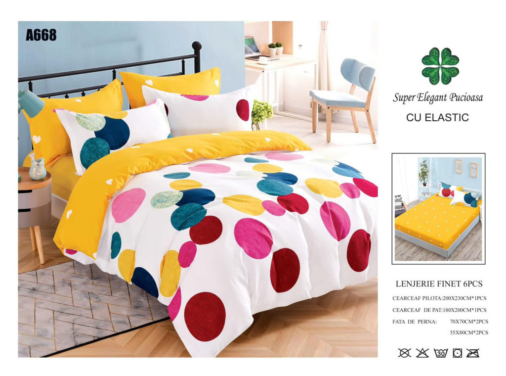 Lenjerie de pat finet cu elastic 6 piese - Cod A668