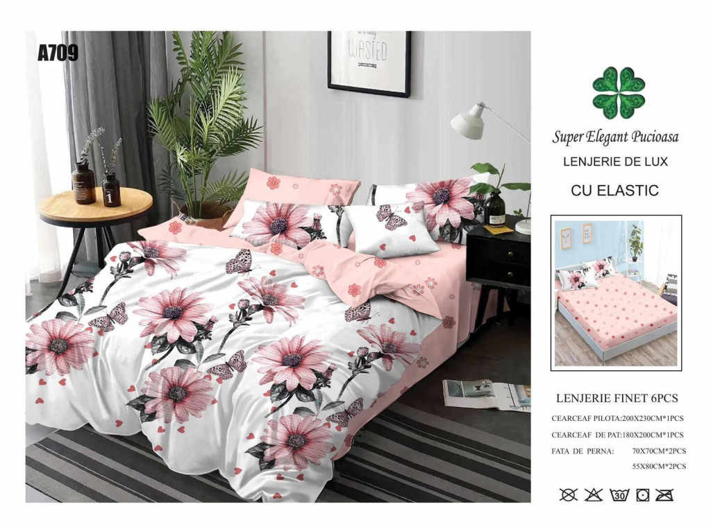 NOU Lenjerie de pat finet cu elastic 6 piese - Cod A709