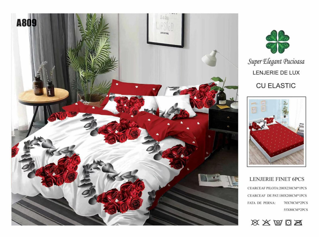 NOU Lenjerie de pat finet cu elastic 6 piese - Cod A809