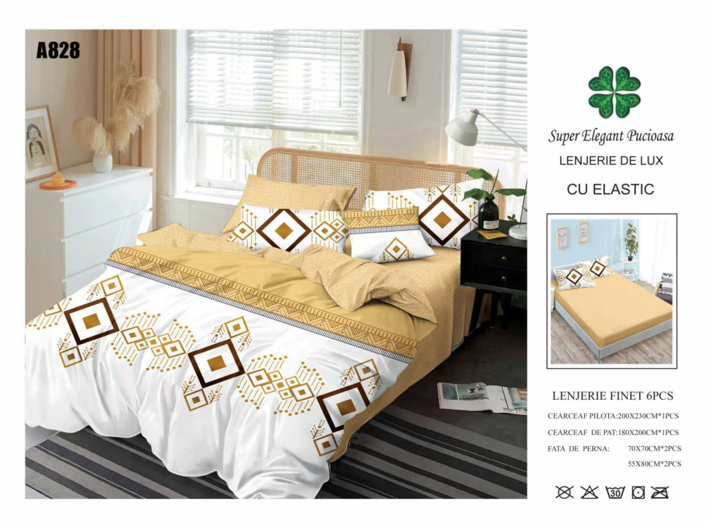 Lenjerie de pat finet cu elastic 6 piese - Cod A828