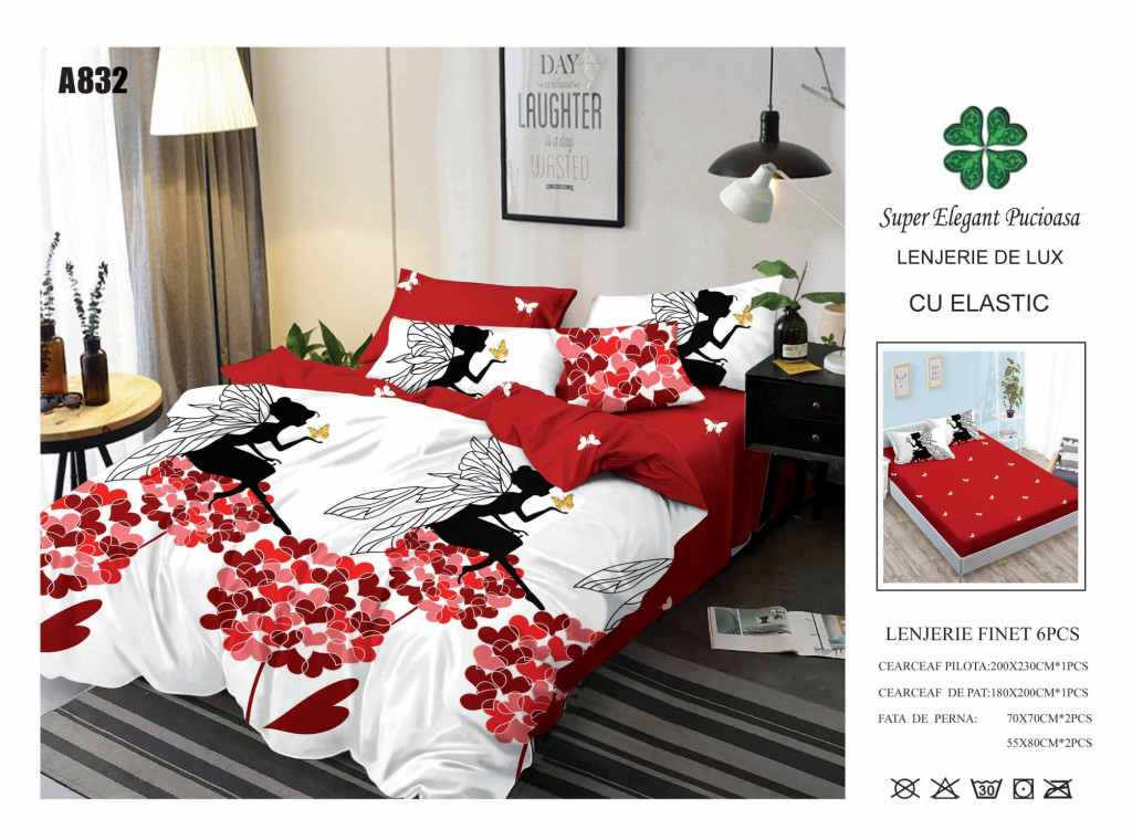 NOU Lenjerie de pat finet cu elastic 6 piese - Cod A832