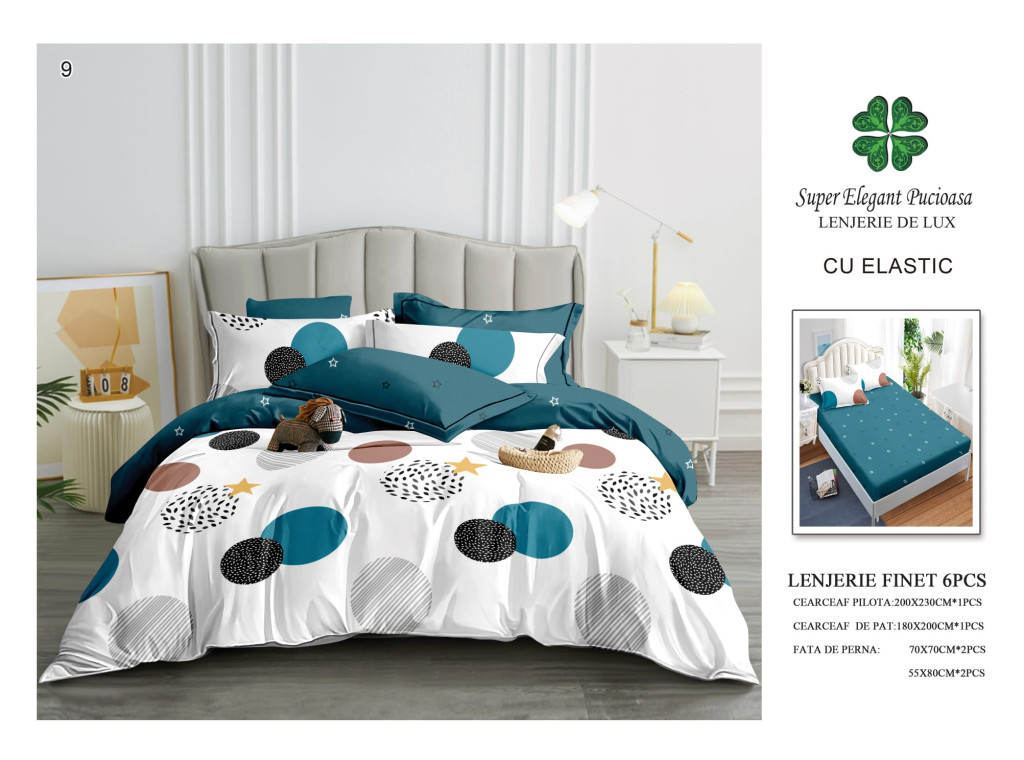Lenjerie de pat finet cu elastic 6 piese - Cod A9